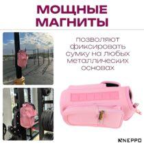 Neppo “Magnet Fit Pink” 000006 — удобная сумка для зала с вшитыми магнитами, которая крепится к металлическим поверхностям. В тренажёрном зале не всегда есть место для бутылки или телефона — просто зафиксируйте сумку на тренажёре и держите вещи под рукой.