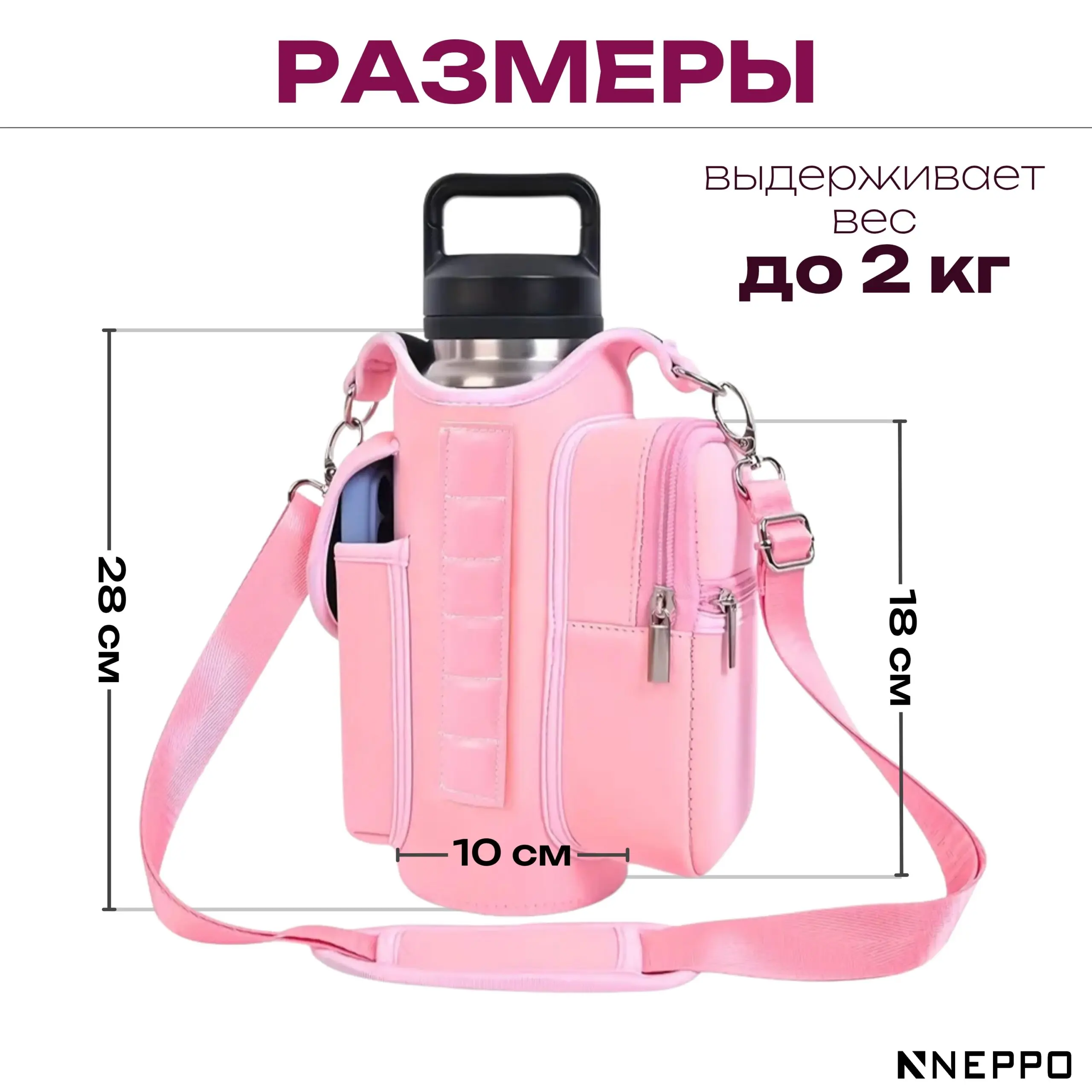 Функциональная организация: два отделения для мелочей, отдельный карман под смартфон и увеличенный отдел для бутылки с водой. Встроенные магниты выдерживают до 3 кг, а регулируемая лямка позволяет носить сумку через плечо или кроссбоди.