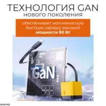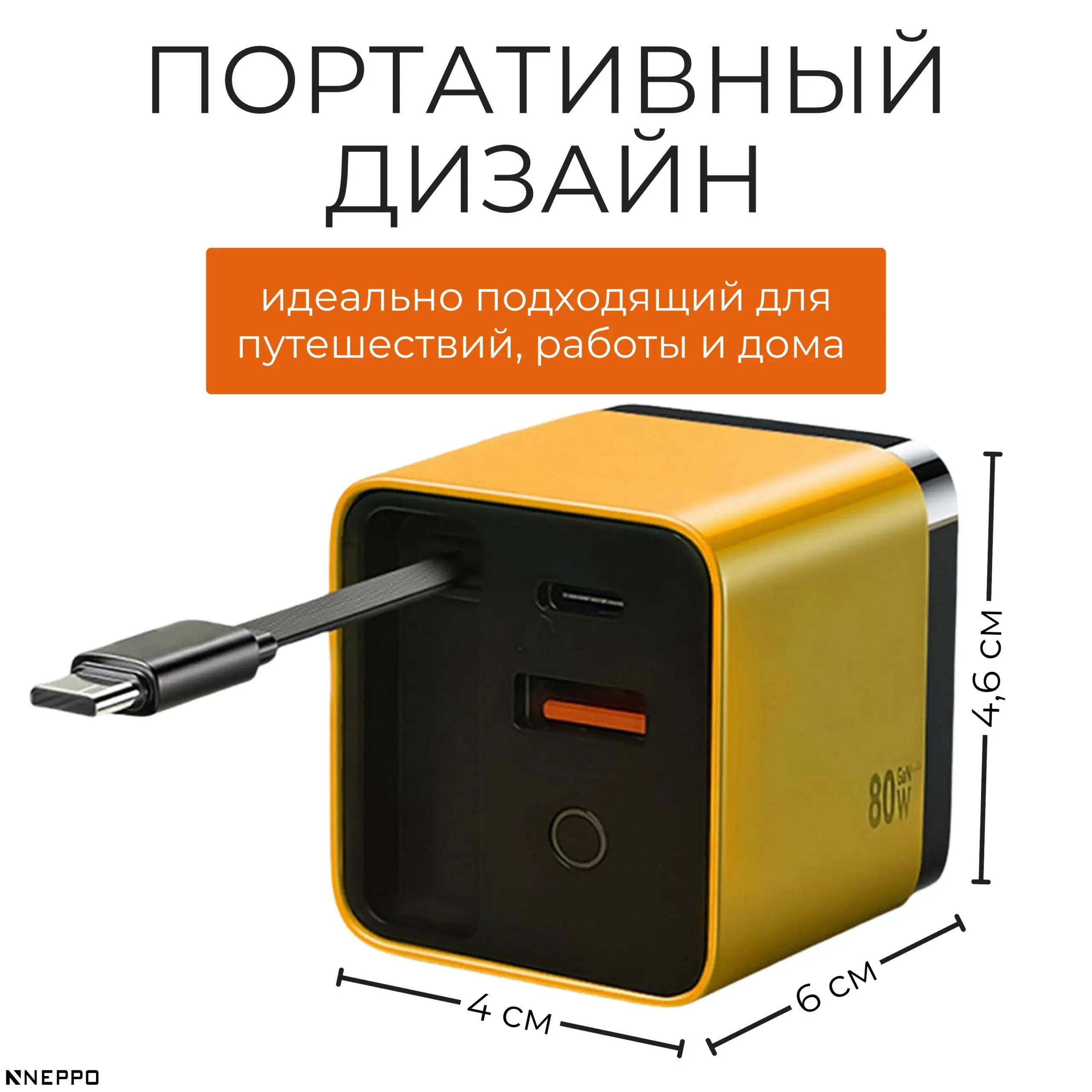 Neppo Super Charge 000006 — зарядное устройство мощностью 80 Вт с функцией Fast Charge. Основной кабель Type-C (45 Вт), дополнительные порты: Type-C (20 Вт) и USB (15 Вт).
