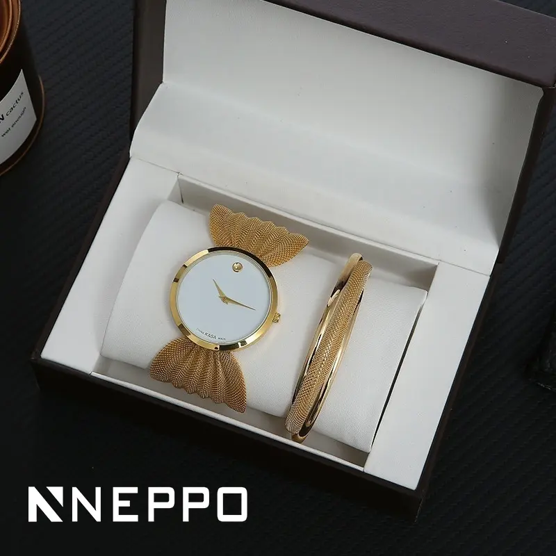 Элегантные женские кварцевые часы Neppo Golden Fish с браслетом и подарочным футляром. Идеальный подарок с оригинальным дизайном по доступной цене.